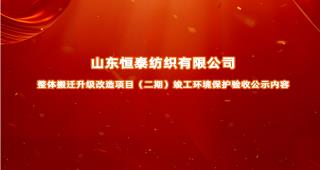 山東恒泰紡織有限公司整體搬遷升級改造項目(二期)竣工環境保護驗收公示內容